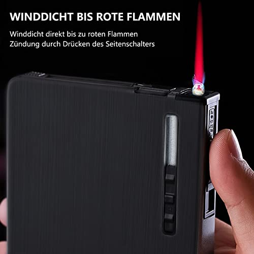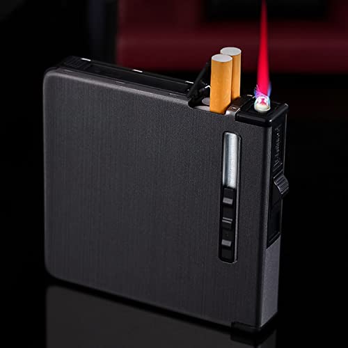 CAM2 Sigarettenetui met aansteker, auto-uitworp, voor 20 sigaretten, elegant ontwerp sigarettenbox met elektronische aansteker, oplaadbaar (zwart draadteken)