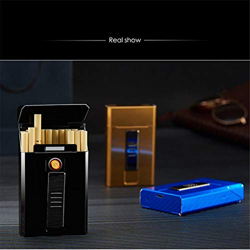 Metalen Sigaret Case Doos Met Elektronische Aansteker USB Draagbare Plasma Tungsten Aansteker Waterdichte Houder 20 stks Slim Sigaretten, roze, 1